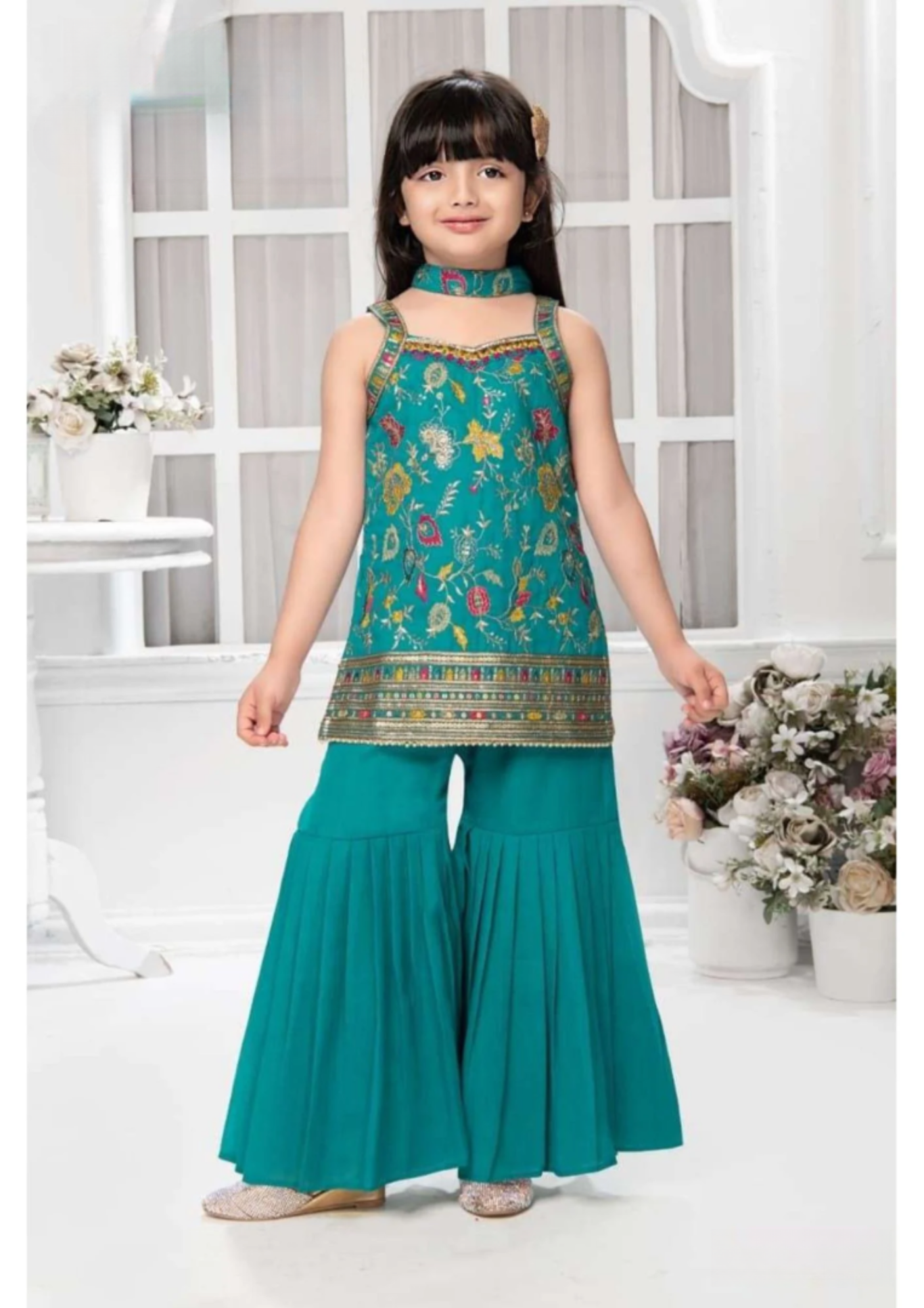 Celebrate culture with flair in our Gharara & Dhoti Set collection—designed to make your little ones stand out at every festive gathering. Whether you’re dressing up your princess in a graceful gharara set or your young champ in a stylish dhoti ensemble, we bring together tradition and comfort in every outfit.
